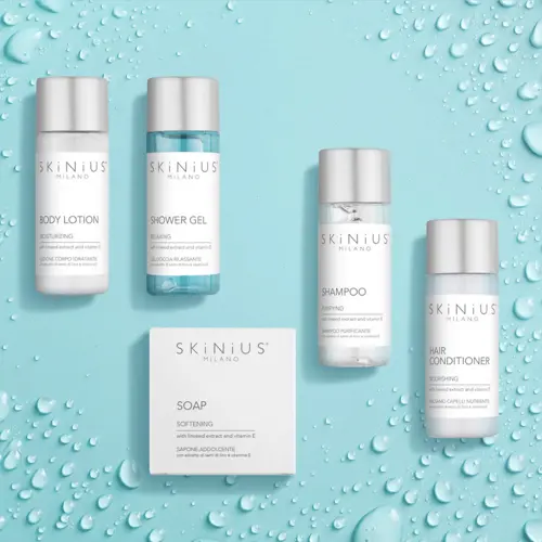 The delicacy of an elixir, the innovation of regenerative and antioxidant benefits. This is Skinius, the amenities line dedicated to the noblest form of skincare, thanks to its formulations enriched with extract of flax seeds and vitamin E. The result? A harmonious action that re-invents the concept of dermocosmetics. Earning the gratitude of the skin.