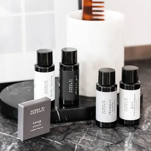 The ideal collection for offering guests an all-round well-being experience, capable of rendering their stay even more pleasant and unique. Acqua di Colonia respects the environment with its bottles and dispensers made entirely from recycled and recyclable materials.